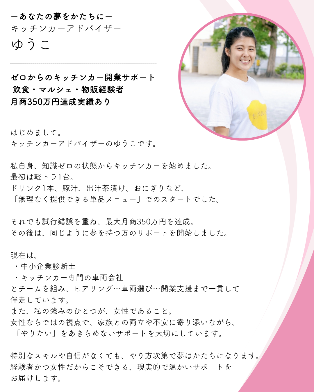 キッチンカー初心者の私でも、ここなら大丈夫と感じました。